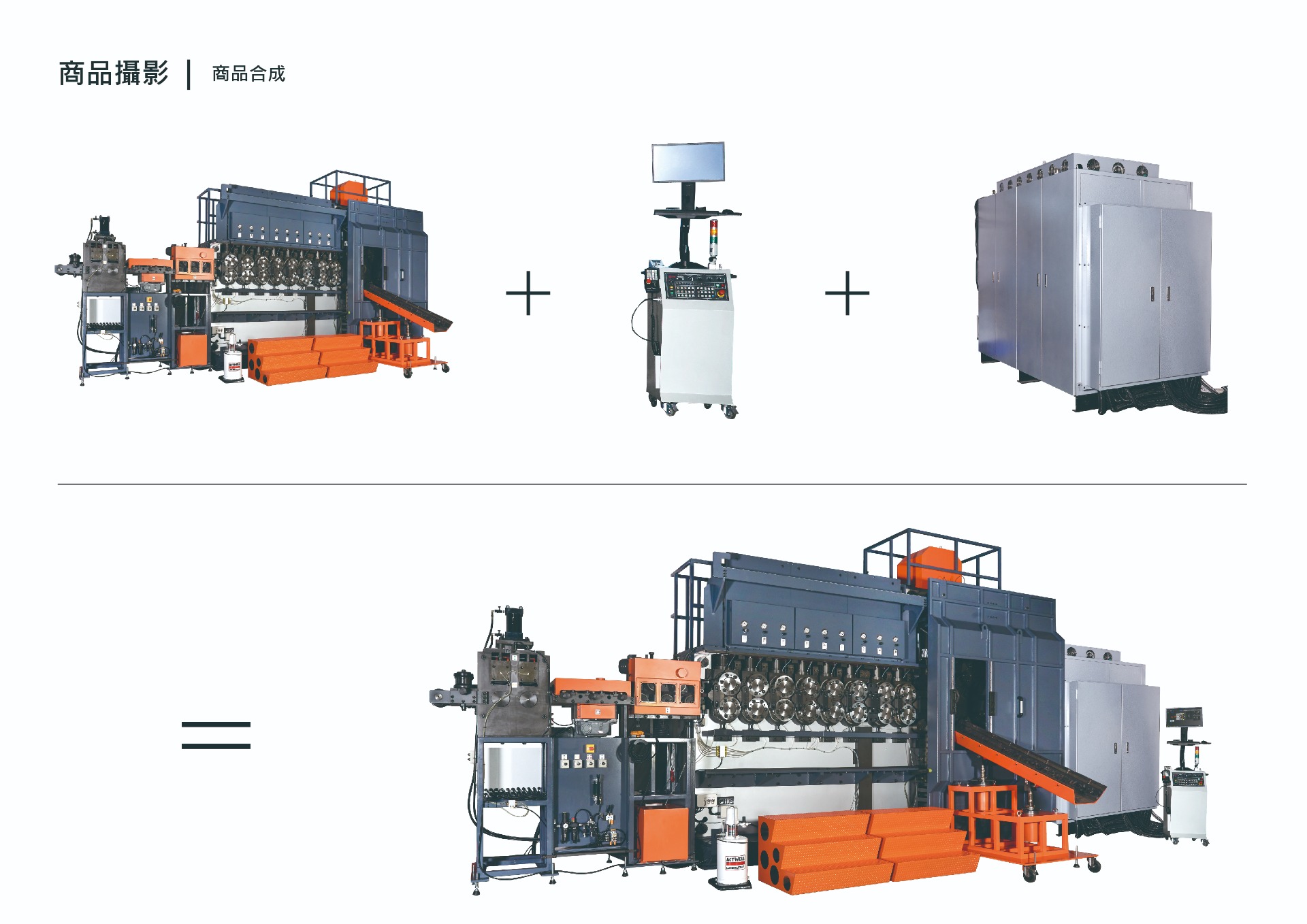 將不同時間、不同角度拍攝的機台照片進行去背與合成,創造一致且完整的產品視覺畫面。