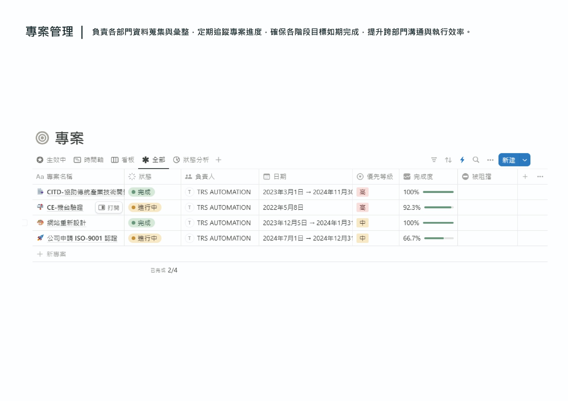 專案進度整合與跨部門追蹤